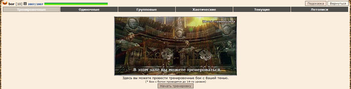 «Начать тренеровку» - нажав на эту кнопку вы перейдёте к поединкам.